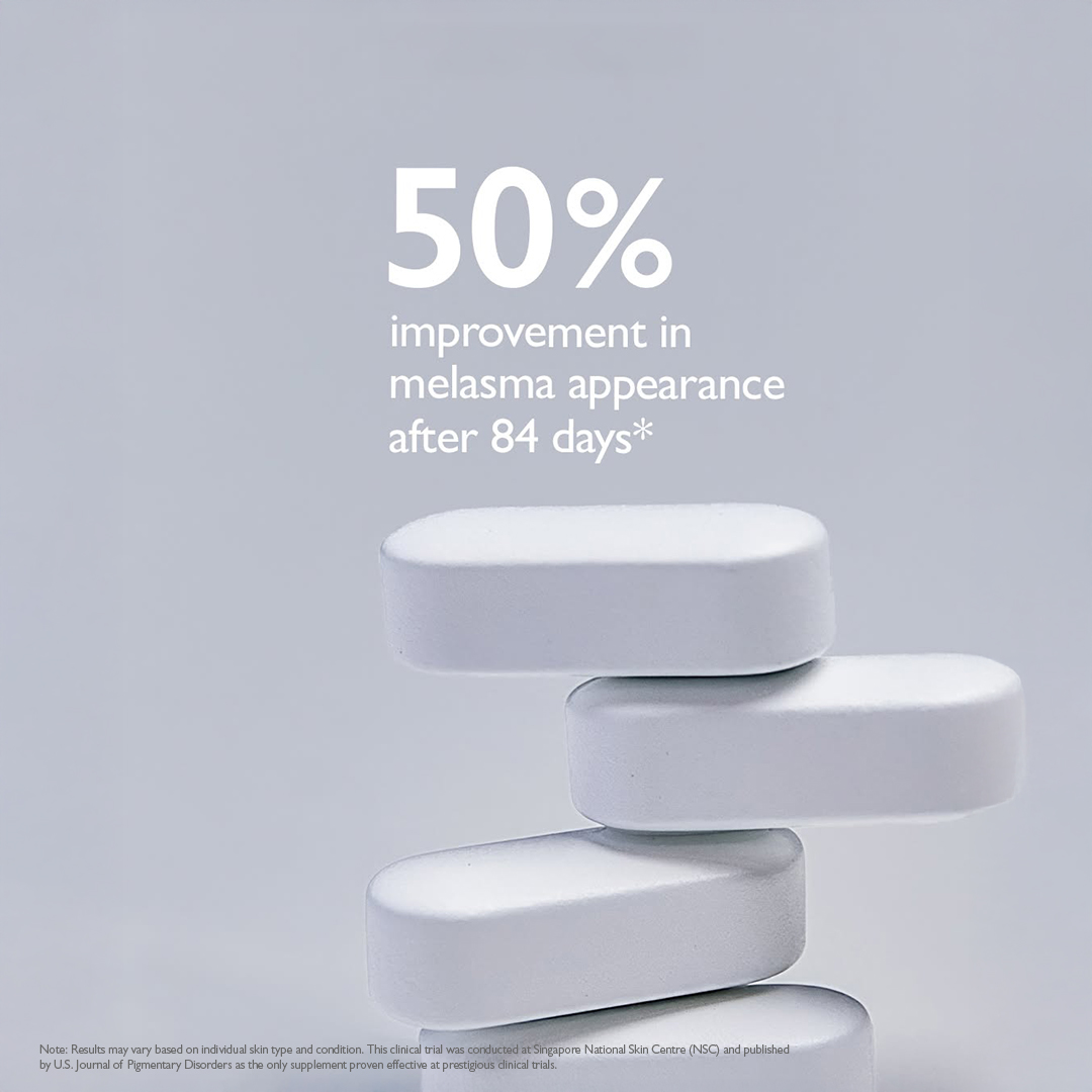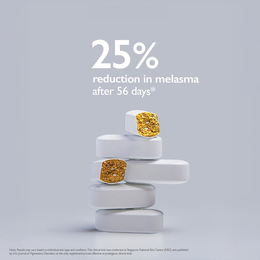 Note: Results may vary based on individual skin type and condition. This clinical trial was conducted at Singapore National Skin Centre (NSC) and published by U.S. Journal of Pigmentary Disorders as the only skin-whitening supplement proven effective at prestigious clinical trials.